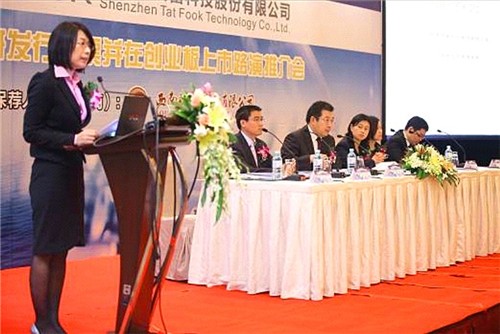 2010年10月26日上午8时,深圳证券交易所三楼洋溢着激动人心的气氛。应邀参加上市仪式的嘉宾们,一边兴致勃勃地与拓荒牛雕塑合影,一边等待着那激 动人心时刻的到来。随着时钟一分一秒的推进,9时24分49秒后进入倒计时,交易所现场沸腾了,人们齐声喊着:“10、9、8、7、6……” 9时25分,孙尚传总裁举起系着红绸的钟锤,敲响了开市宝钟,顿时庄严的钟声和热烈的掌声、欢呼声交织在一起,球友会(中国)——我们的公司终于成功上市了。